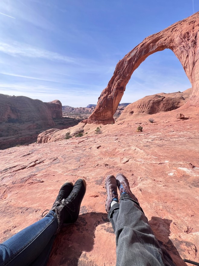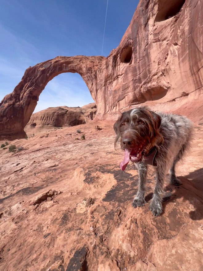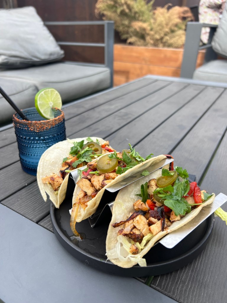 We arrived to Bentonville Bike Camp and settled in for a bit before heading into town and walking along the Razorback Greenway. Mountain Bike trails weave in and around the Greenway and it was full of people enjoying the warm evening. Birch got a lot of attention on our walk, including a shout out from Bentonville Animal Services who apparently loves WPGs. We eventually reached The Hub Bike Lounge for dinner. You order at the counter so Birch was allowed to join me inside for a few minutes and then we sat outide on the patio. I ordered the grilled chicken tacos and a frozen “Hubarita” with tajin. I eat A LOT of tacos and these were the best I’ve had in a very long time…maybe ever. So delicious!