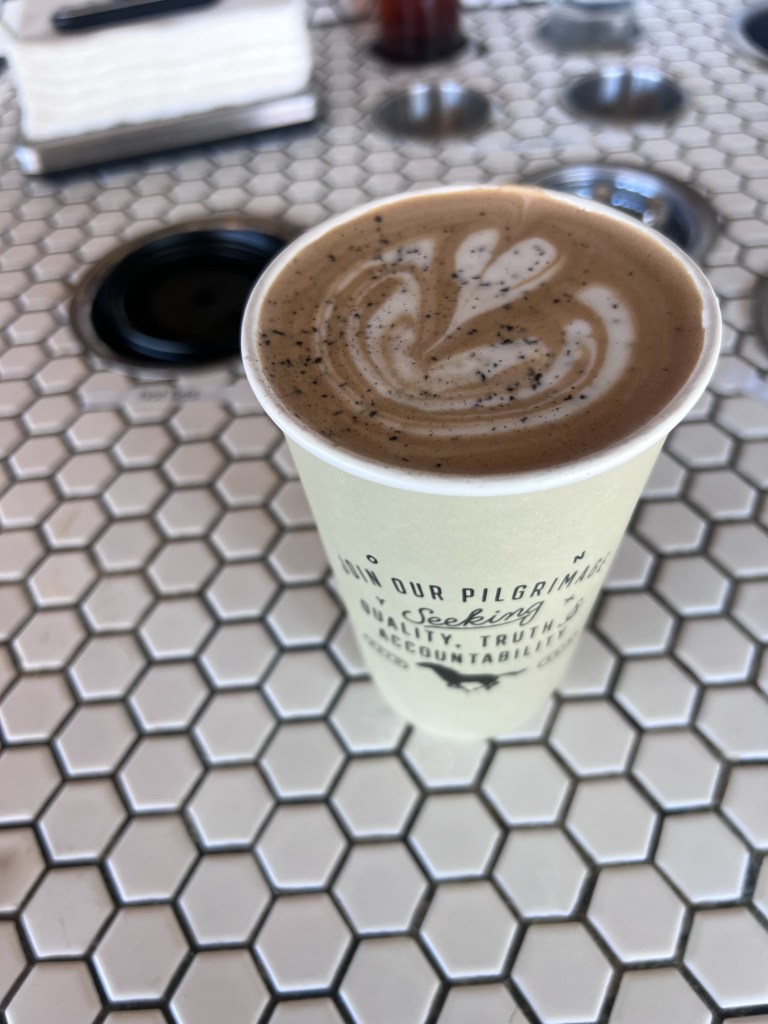 I took a very quick ride on a green loop on the ‘Back 40″ biking trails that morning and then went in to town for coffee and breakfast. A friend had recommended Onyx Coffee Lab so I went by there and ordered a Salt Mocha and Avocado Toast “Make it Brunch”. Both were delicious and well worth the wait!